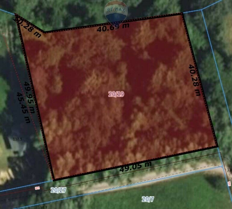 1. Działka z linią brzegową (2.041 m2 + udział w drodze, nr 20/19)
